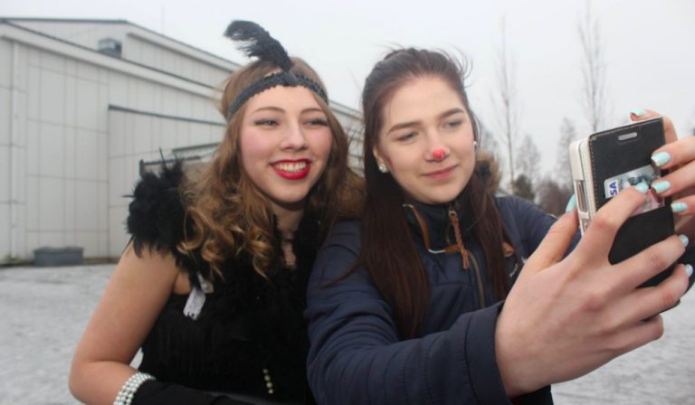 Vimpelin lukion penkkareissa pukeuduttiin tällä kerralla eri aikakausia koskeviin teemohin, ajalta ennen ajanlaskun alkua aina nykypäivään saakka.Tärkeää osaa penkkareissa näytteli aikakone, johon saatiin lisäosia opettajien – ja abienkin -suorittamien tehtävien avulla. Aino Mäkelä oli pukeutunut 1920- ja 30-lukujen teeman mukaan. Hän pääsi penkkareiden päätteeksi selfieen Laura Luoma-ahon kanssa.
