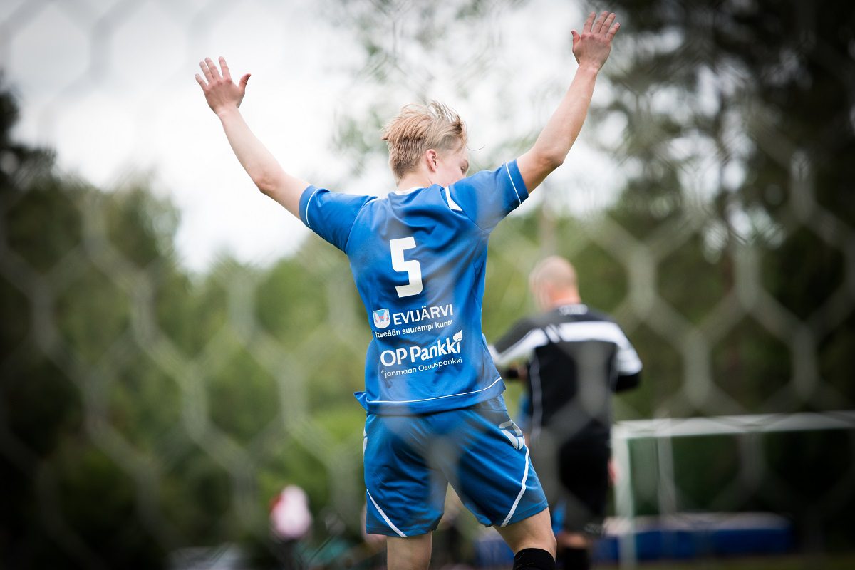 Viljami Turpeinen juhli maalia, kun Evijärven Urheilijat päihitti lauantaina kotikentällään Lohtajan Veikot 8–2. Ottelu oli EU:n kahdeksas, eli kausi seiskadivarissa oli täsmälleen puolivälissä. Seuraava kotipeli on torstaina Kokkolalaista Sääripotkua vastaan. Kyseessä heidän kakkosjoukkueensa eli Sääripotku/II. ”Yhteispeli on kehittynyt varmasti ensimmäisistä peleistä. Jokaiselle alkaa löytyä kentältä se oma pelipaikka”, Juho Fränti kertoo.