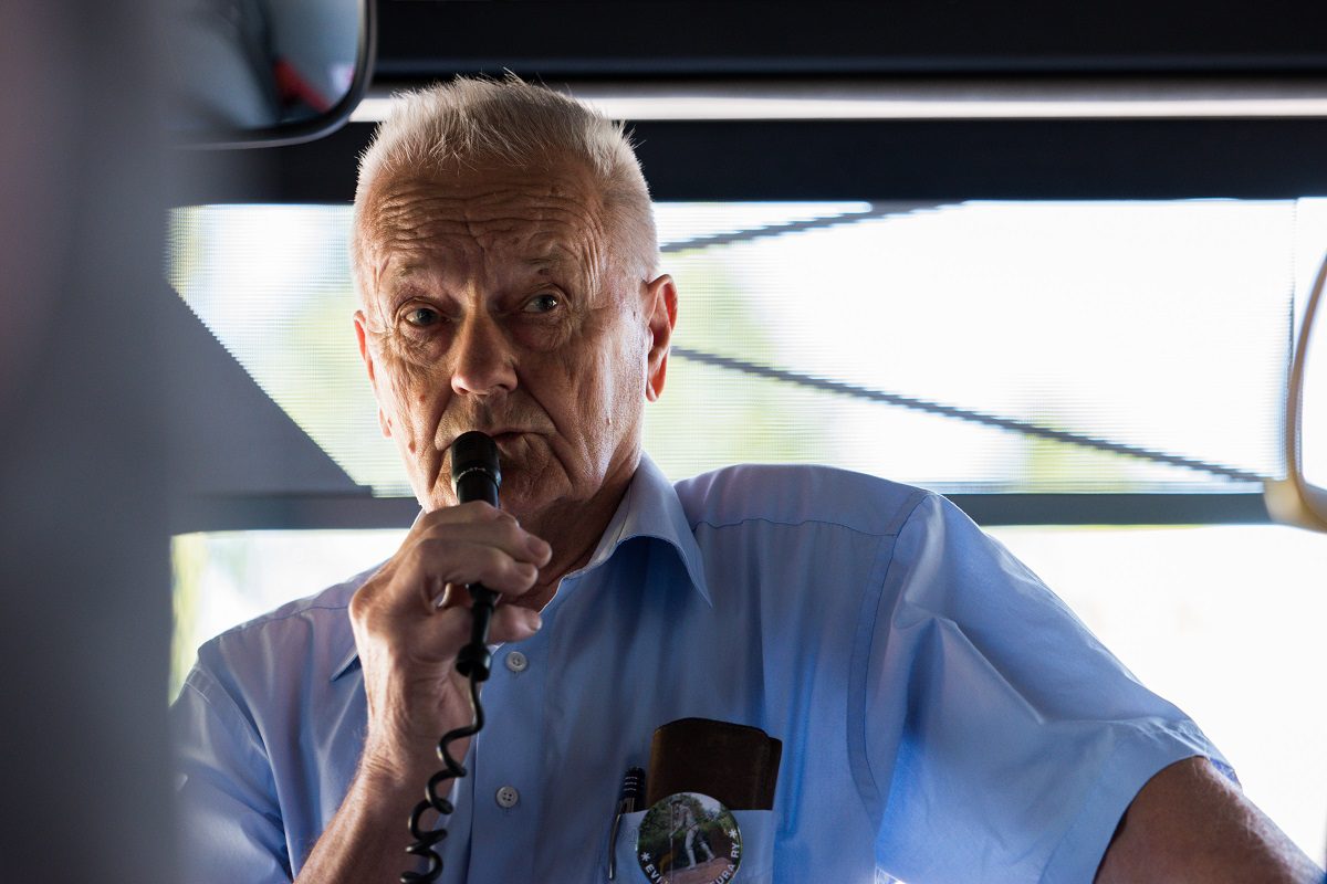 Perjantai-iltapäivällä 28.6. oli ensimmäinen Evijärvi-seuran järjestämistä kiertoajeluista. Bussiretken aikana tutustuttiin Heikki Valijoen (kuvassa) opastuksessa Evijärven muistomerkkeihin, kuten Haapikylän käräjäkiveen, jonka paikalla Rannantuvan raunioilla pidettiin vuonna 1596 koko Järviseudun alueen toiset käräjät, ja muuhun pitäjän historiaan.