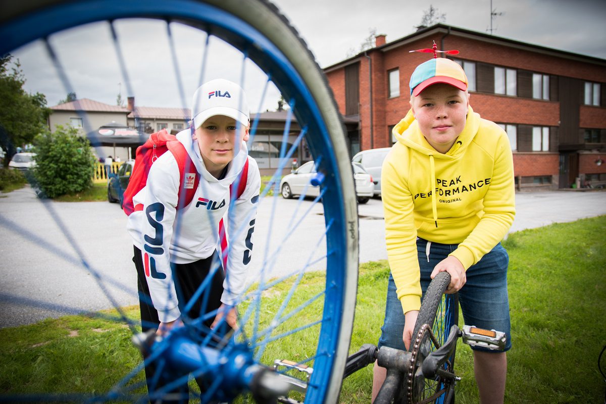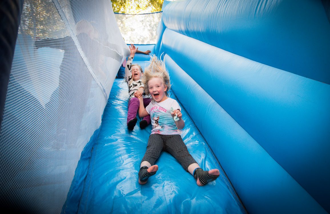 Siiri Anttikoski (edessä) ja Emilia Saari liukumäessä Inan illassa.