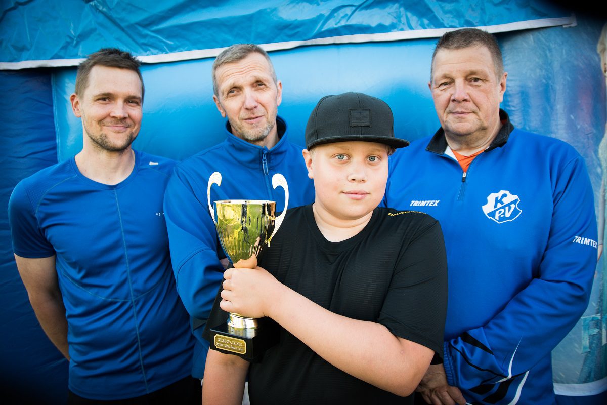 Inan ilta: Tuomas Anttikoski, Mika Laihorinne, Veikka Laide ja Erkki Laide veivät rantalentiksen kiertopalkinnon Lahdenkylään.