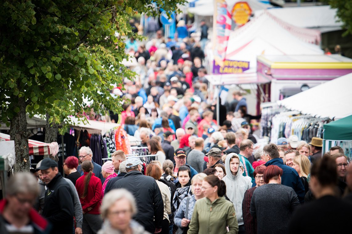 Evijärven keskustassa ei tällaista väenpaljoutta muulloin kuin markkinoilla näy.
