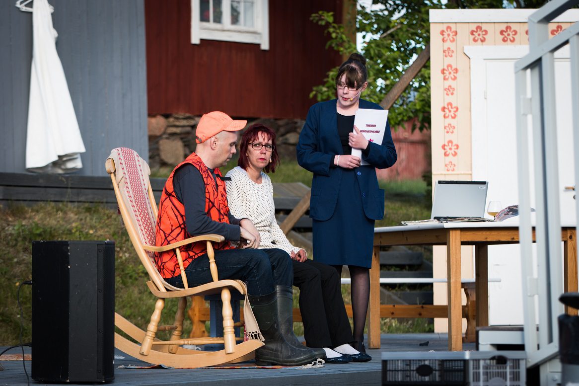 Vaimokulta ja armas anoppi -näytelmä: Veijon (Teemu Kauris) ja Tuulian (Elina Ketomäki) välejä kiristää myös avioliittoneuvojan (Minttu Kangasmetsä) tupsahtaminen ovesta sisään.