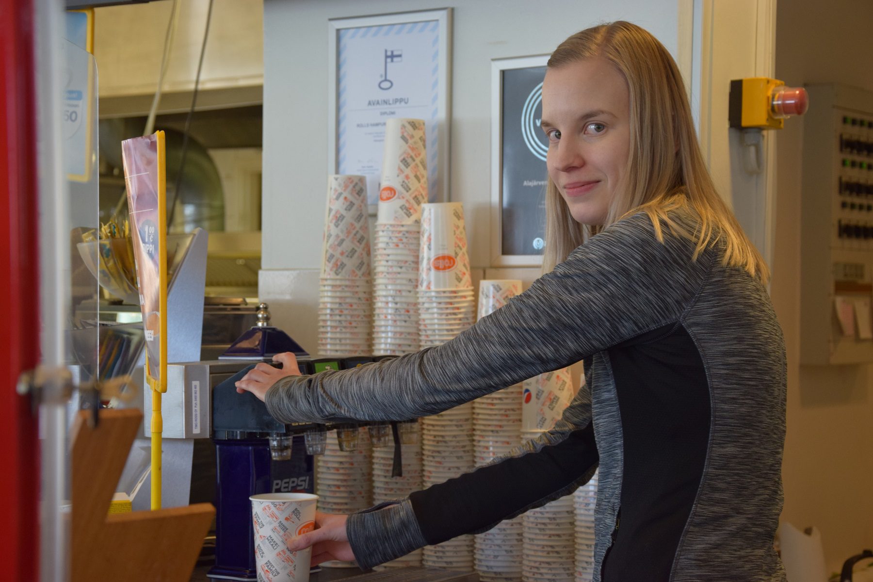 Noutoannoksia saa Nesteeltä kello 10–21, kahvia ja kahvilatuotteita jo aiemmin aamulla. –Lounasaika ja viikonloppuillat ovat kiireisimpiä. Pitsaa ja hampurilaisia mene tasaiseen tahtiin; ne paikkaavat myös paikkakunnalla vähentynyttä lounastarjontaa. Ihmisten pitää kuitenkin syödä.