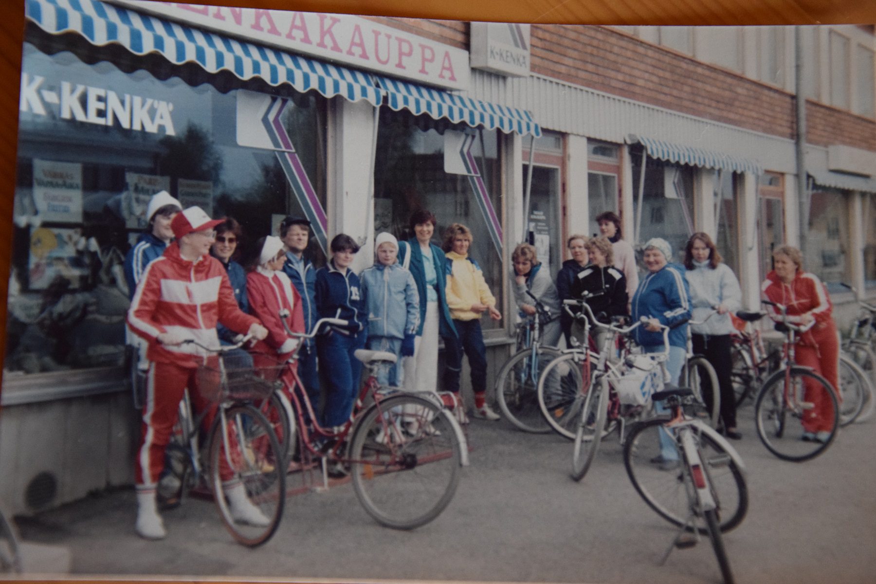 Leena Pukkinen muisteli pyöräilleensä siskonsa kanssa töihin ympäri vuoden. Samalla kuljetettiin lapset päivähoitoon, parhaimmillaan kolme pyörän päällä ja neljäs vatsassa yhtä aikaa. –Talvella pyörä oli niin kankea, että sai ves’märkänä polkea.