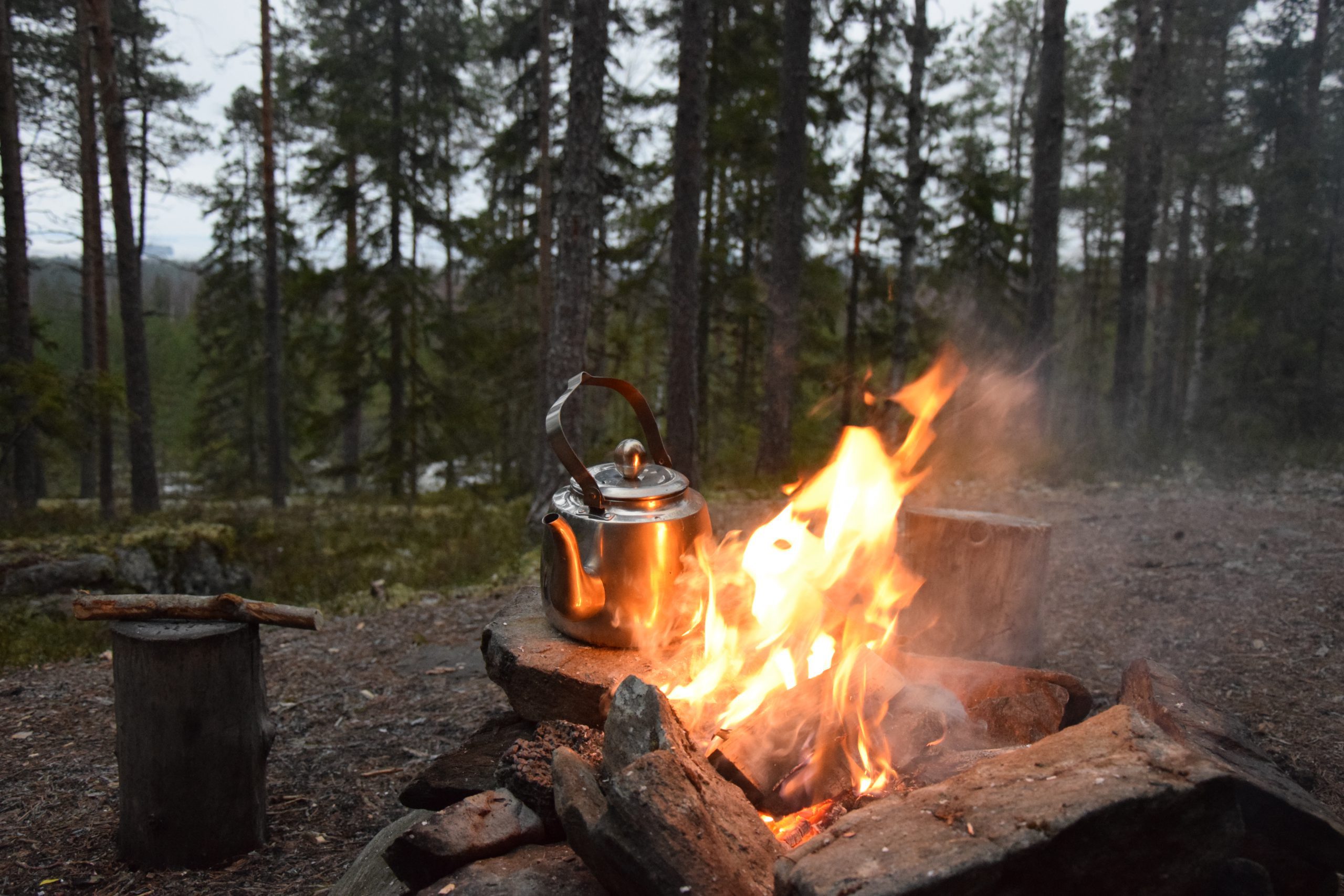 MEHUMUKISTANI nousee höyryä. Puut rapisevat ja naksahtelevat palaessaan nuotiossa. Vainio kertoo, että marjastaminen on hänelle luontopuuhista mieluisinta.