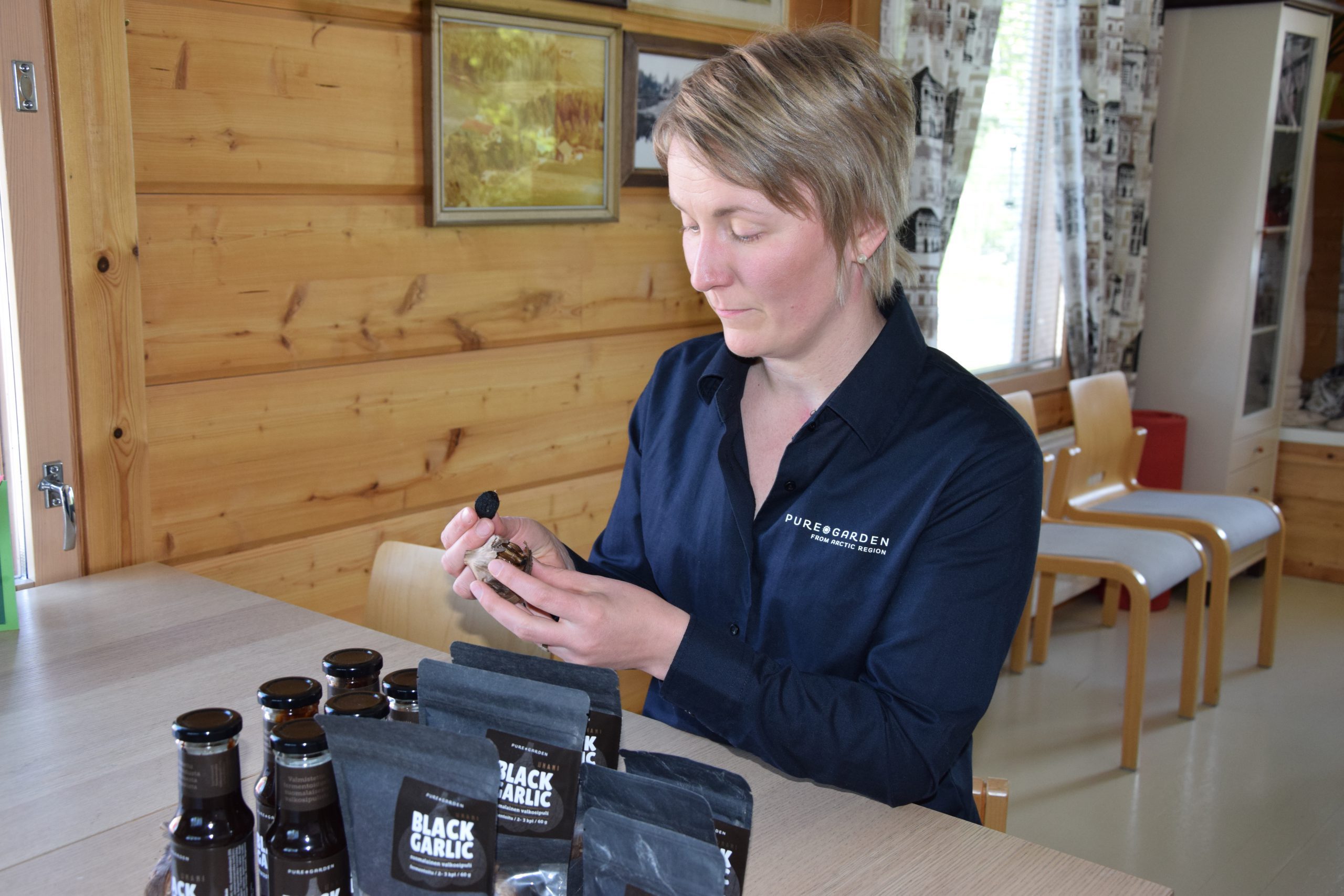 PURE Gardenin mustaa valkosipulia myydään nyt kokonaisena, valmiiksi kuorittuina kynsinä tai kastikkeena. –Sitä voi napostella sellaisenaan. Maku on hieman erikoinen. Umami maku tulee Aasian keittiöistä ja on saavuttanut Pohjolankin. Se nostaa ruoan oman maun esille uudella tavalla ja korostaa raaka-aineiden makua miellyttävästi. Kastike toimii lihalle ja kalalle, grilliruoan marinointiin, mutta myös tuomaan tvistiä ihan suomalaiseenkin ruokaan, vaikka makaronilaatikkoon. Olen saanut palautetta, että tämä tuo hyvin makua myös kasvisruokiin. Se sopii hyvin myös juomiin ja haaveilen ehtiväni laatia reseptejä sen käytöstä makeisiin herkkuihin, esimerkiksi suklaan kanssa yhdistettynä.
