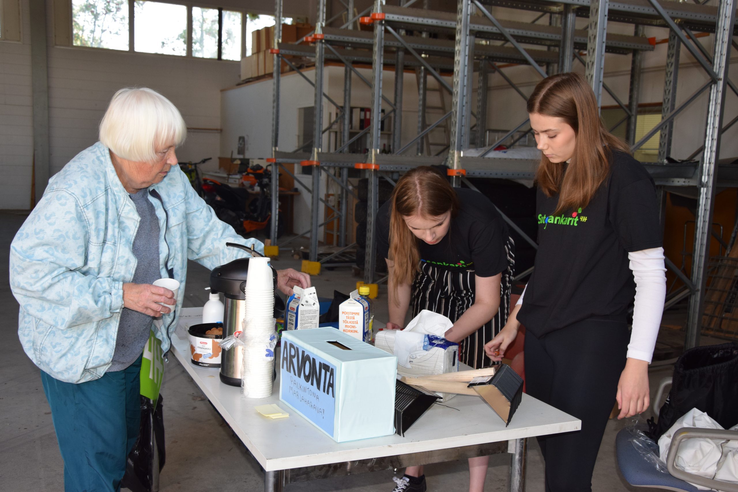 SATOSANKARIT työllistää nuoria marja-asemilla marjan ostossa, sekä kannustaa nuoria hankkimaan tuloja marjoja keräämällä. Tänä vuonna ostetaan vain puolukkaa, ja joillakin asemilla myös pihlajanmarjaa. Mustikan osto peruuntui kuivuuden ja siitä seuranneen huonon mustikkasadon takia. Lia Järvelä, Kirsi Koskela, Riina Utanen ja Saija Raivio palvelevat puolukan kerääjiä toiminnanjohtaja Kirsi Sänkiahon kanssa.