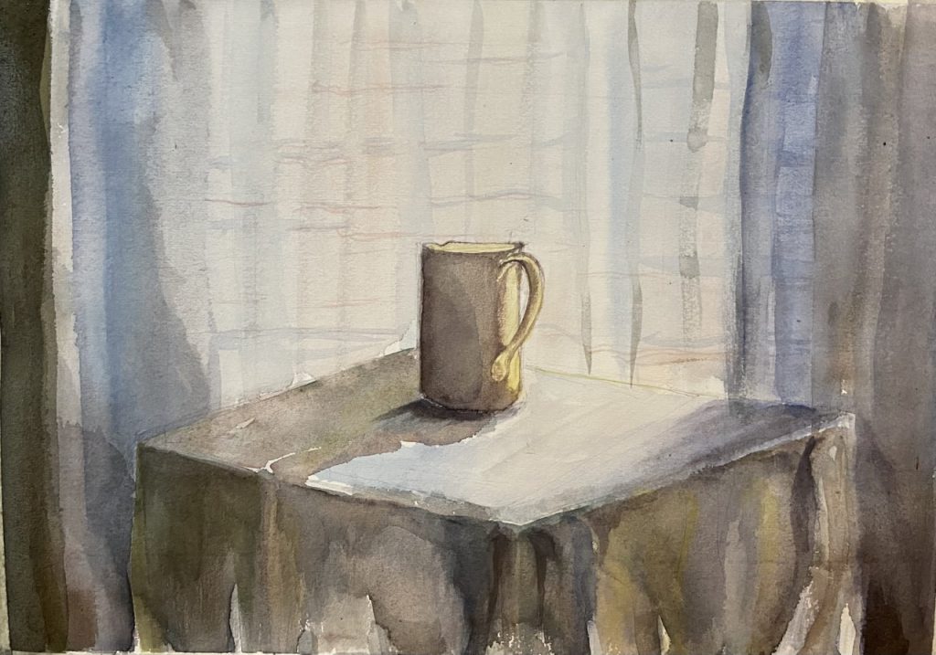 Mahdollisuus tehdä eri tekniikoilla ja valita itse se osa-alue, jota lähtee kehittämään, on positiivista, sanoo Heli Rintamäki. Kuvassa asetelmaharjoitus, akvarelli, 42 x 29 cm