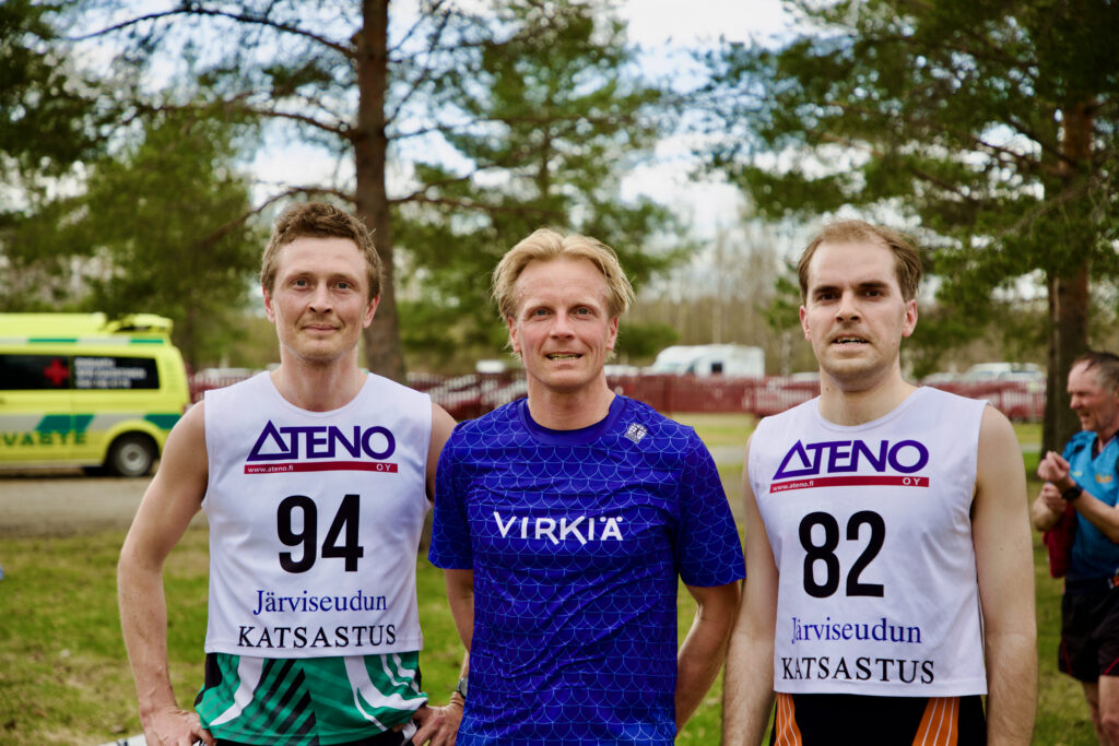 Lieneekö sopivan juoksukelin ansiota, sillä vauhti miesten sarjan kärkijuoksijoilla oli tasaisen vahvaa. Miesten kolme parasta saapuikin maaliin hieman reilun puolentoista minuutin erolla. Voittoajan 32.25 juoksi Lapuan Virkiää edustava Juha Laitinen. Toiseksi juoksi Antti Ranta-aho Vasa IS ajalla 33.53 ja kolmanneksi Antti Hakala KJV ajalla 33.58.