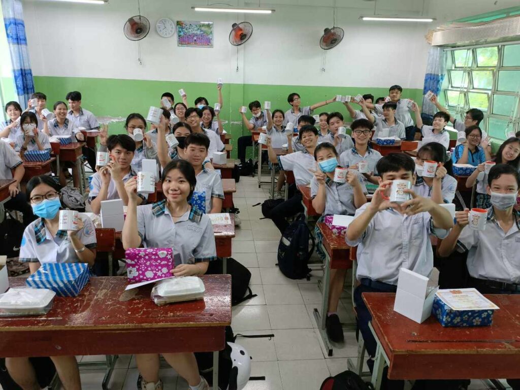 Suurimmat erot maiden koulujen välillä ovat, että Suomessa tarjotaan lounas, Vietnamissa otetaan eväät tai mennään kotiin syömään. Lounastauolla voi ottaa vaikka päiväunet. Vietnamissa koulupäivät ovat pitkiä ja oppituntien välissäkin opiskellaan yhteiskunnallisia asioita. Luokkakoot ovat suuria. Koulua on lauantaisinkin. Sekä opiskelijat että opettajat käyttävät uniformuja.