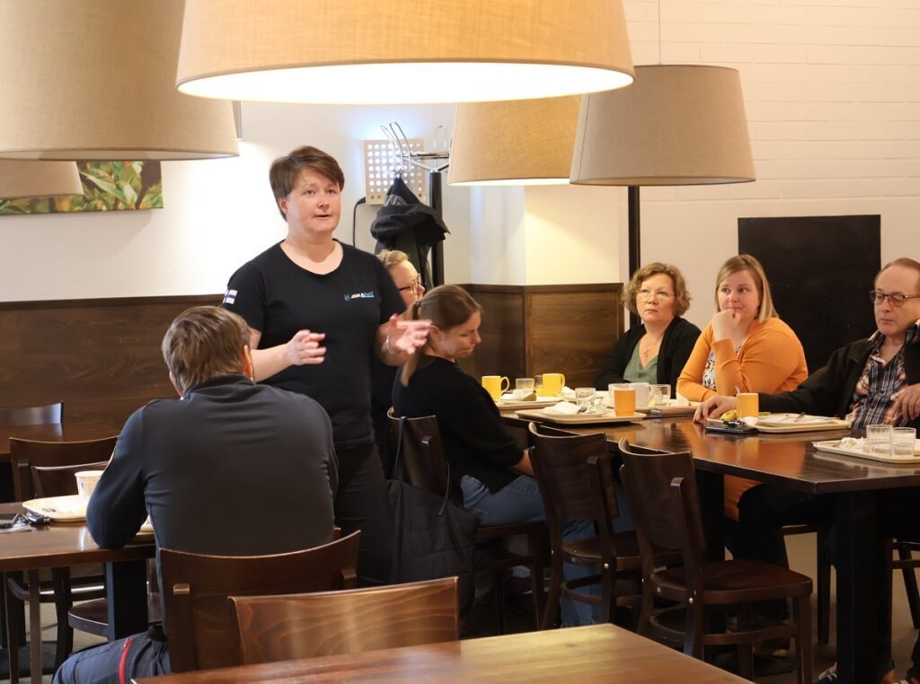 TIISTAIAAMUN aluksi Evijärven Yrittäjien puheenjohtaja Karoliina Sulkakoski toi esiin huolestuttavat uutiset isojen rakennusalan yritysten kaatumisista sekä yleisestä kustannusten noususta. Hän pohti sitä, kuinka paljon yrittäjät voivat sopeuttaa omaa toimintaansa näissä olosuhteissa. Monia muutoksiakin on tullut ja tulossa, kuten uudet hyvinvointialueet sekä työ- ja elinkeinopalvelujen uudistus.