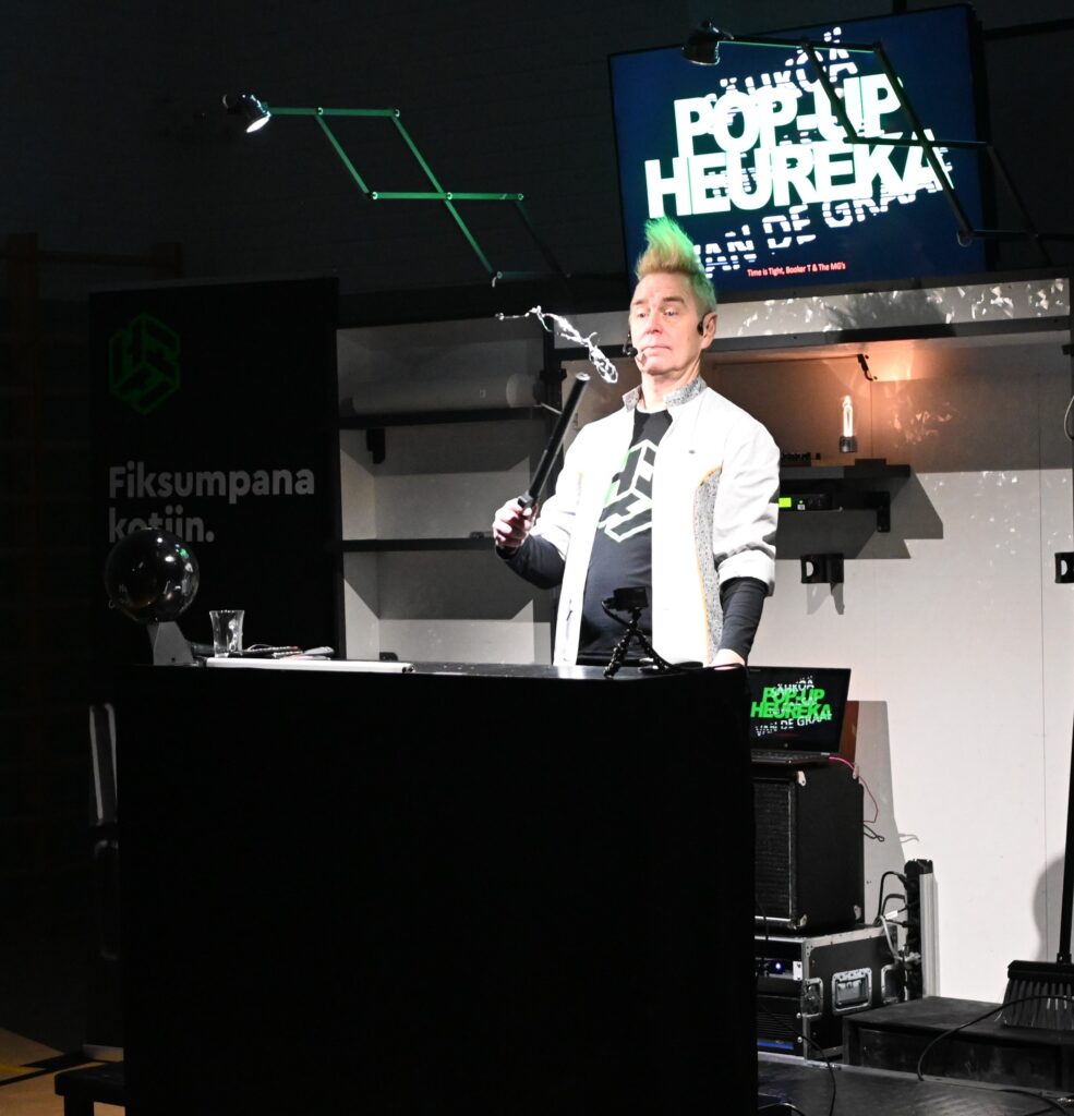 –Pop-up Heurekan ajatuksena on viedä tiedeshow sellaisille alueille, joista ei niin helposti päästä käymään Vantaalla asti, kertoo Harri Montonen, Heurekan pääinnoittaja.