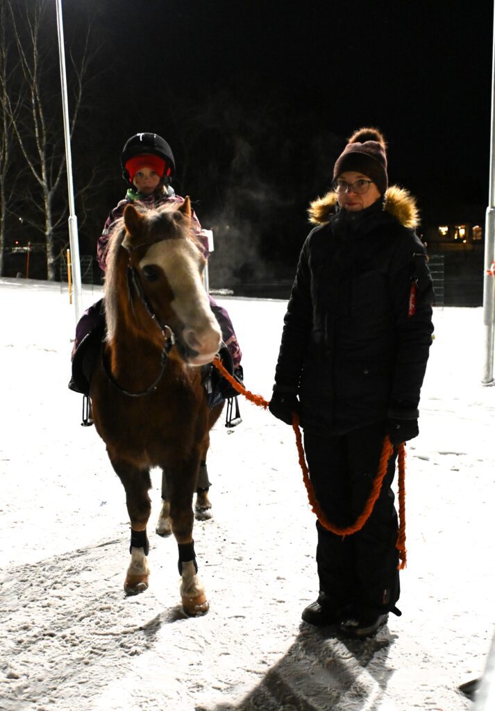 Saarikentän edustalta löytyi Heppahaaveilijoiden heppoja pientä ratsastuskierrosta varten. Josefiina Riihimäki, 6, nautti Prinssi-ponin rauhallisesta kyydistä.
