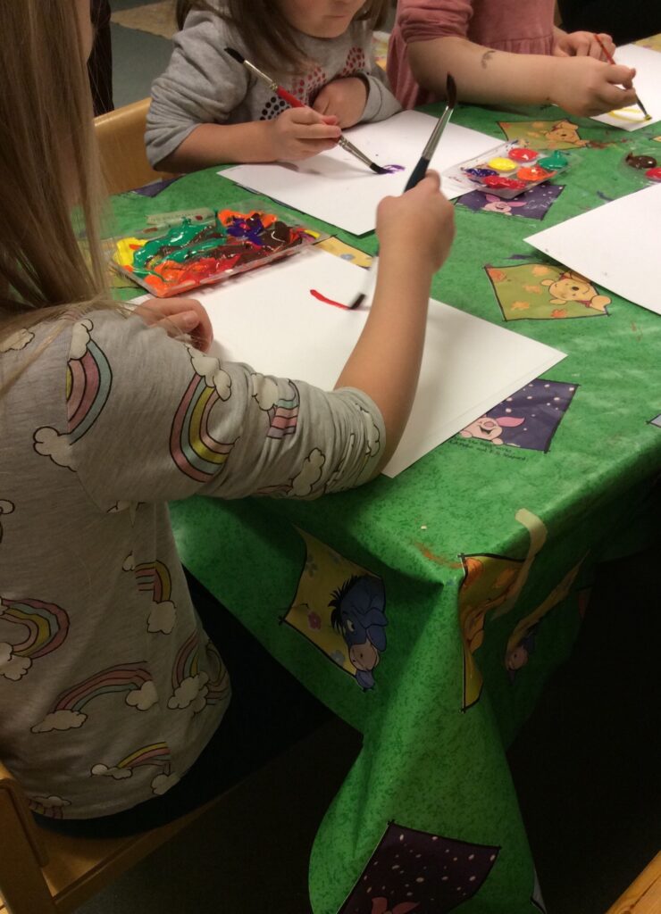 Eve, 5, kertoo, että maalaus oli kivoin piste lasten riehasta.