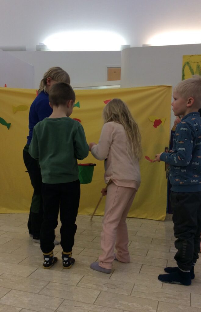 Pienet lapset tykkäsivät kuunnella, kuinka isommat opettivat pienempiä tekemään uusia asioita. Onginnasta lapset saivat heijastimen ja tikkarin, sen jälkeen he saivat kupillisen mehua ja piparin. Lapset tykkäsivät erityisesti temppuradasta, piirileikeistä ja leikeistä, joissa he saivat purkaa energiaa. Maalauksessa ja askartelussa lapset keskittyivät kuuntelemaan isompia ja keskittyivät omiin töihinsä.