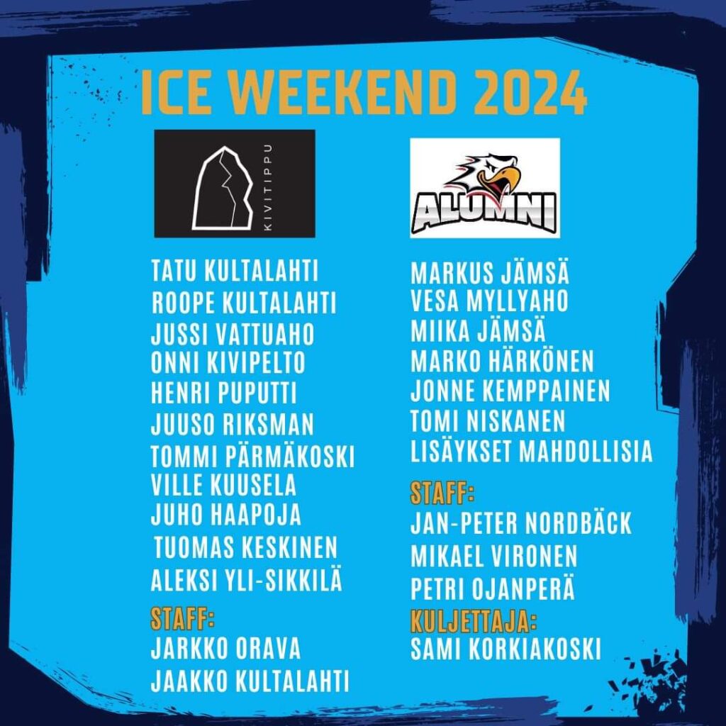 Pietarinkadun Oilers ei noudattanut suullista yhteistyösopimusta viikonloppuna Lappajärvellä järjestettävään Ice Weekend -tapahtumaan liittyen ja on ilmoittanut maanantaina illalla, aivan viime hetkillä, jättäytyvänsä pois tapahtumasta. Korvaavana kumppanitahona tapahtumaan tulee Vaasan Sport Alumni, joka ottaa mittaa Kivitippu All Starsista lauantaina kello 14 pelattavassa pipolätkäottelussa, kertovat tapahtuman järjestäjät.