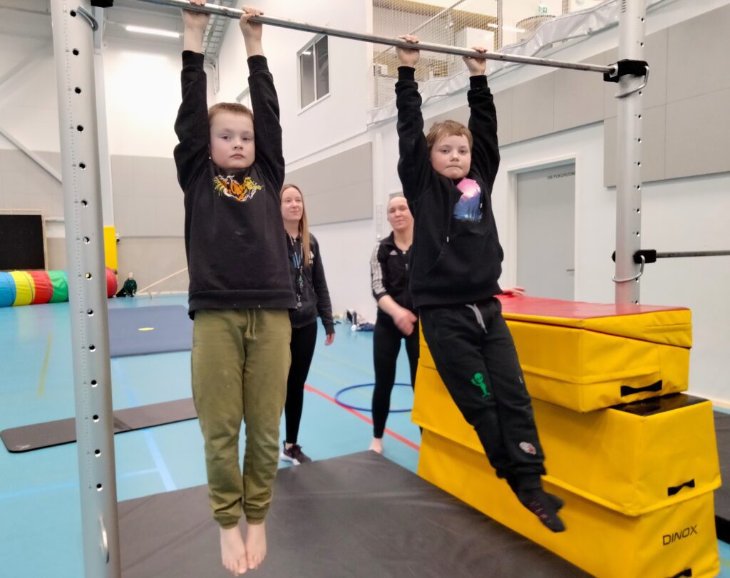 Päivän mittaan kierrettiin saliin rakennettuja temppuratoja ja leikittiin liikuntaleikkejä, ja jokainen sai kehittää omia liikunnallisia taitojaan monipuolisten välineiden kanssa ohjaajien valvonnassa. Anu Peltokangas 4H:sta ja Laura Jokinen Järvilakeuden Kansalaisopistosta kertoivat, että päivä on mennyt hienosti ja kaikki lapset ovat liikkuneet innokkaasti.
