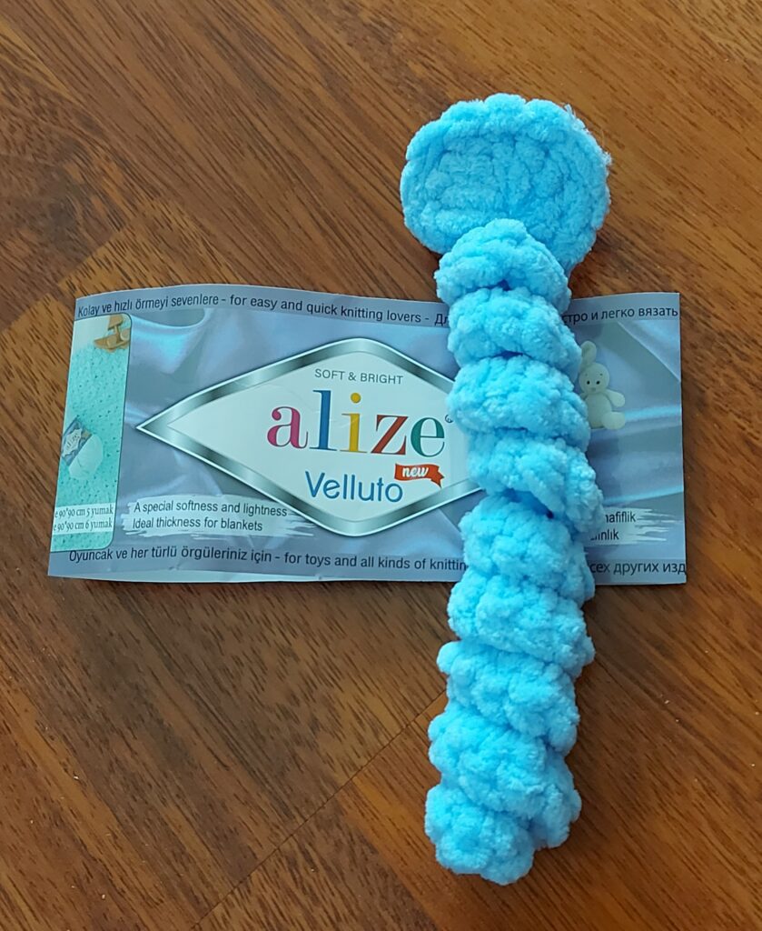OHJE: Tee alkuun haluamasi määrä, esimerkiksi 20–30 ketjusilmukkaa. Lähde tekemään kolme kiinteää silmukkaa aina jokaiseen ketjusilmukkaan. Pian huomaat, että lenkistä alkaa muodostua spiraali. Jatka samaan tyyliin loppuun asti. Viimeisistä silmukoista muodostuu pää, päätä työ ja lisää halutessasi madolle silmät.