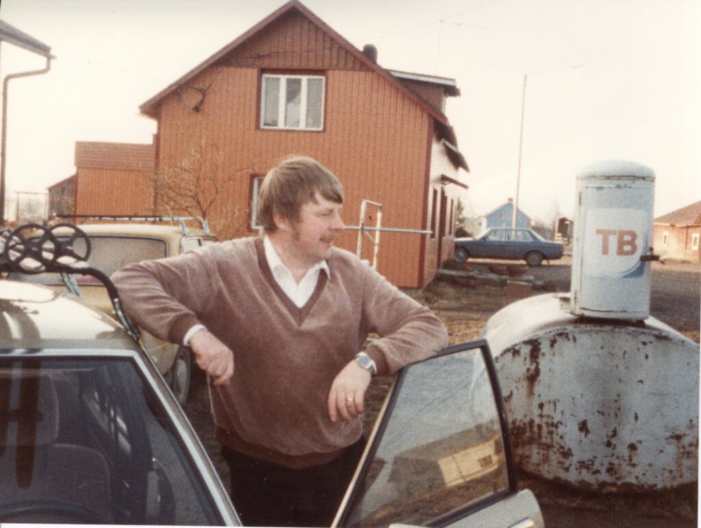 Särkikylän baarin alkuperäisestä rakennuksesta on säilynyt vain uudempi kuva, jossa seinät ovat saaneet pellityksen. Kuvan henkilö on Matti Åby. Kuva: Matti Mustajärvi.