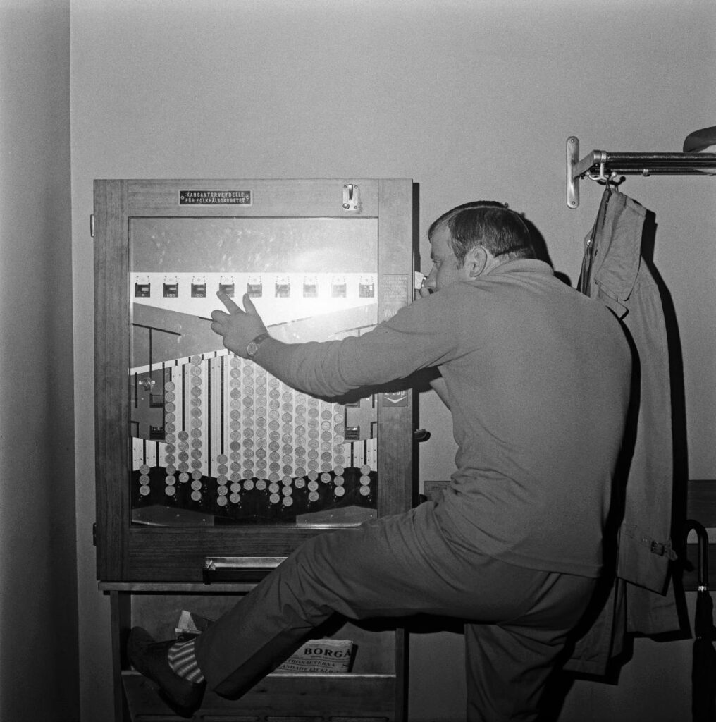 Paavo Ranta-aho oli baarin omistaja 1960-luvulla yhdessä vaimonsa Hilman kanssa. Tällaisena tiskin takana myhäilevänä, yleensä istuvana miehenä Paavo muistetaan. Usein oli Hilman vuoro palvella asiakkaita. Kuva: Reijo Kivijärvi.