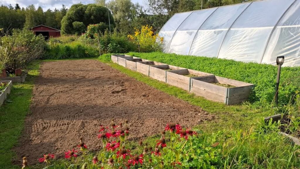Kotipihassa Koskenvarrella on kaksi kasvihuonetta, toinen isompi ja toinen pieni. Molemmat tuottavat monipuolisesti satoa hedelmistä, juureksista ja kasviksista, jotka sitten jatkojalostetaan, kuivataan tai pakastetaan.