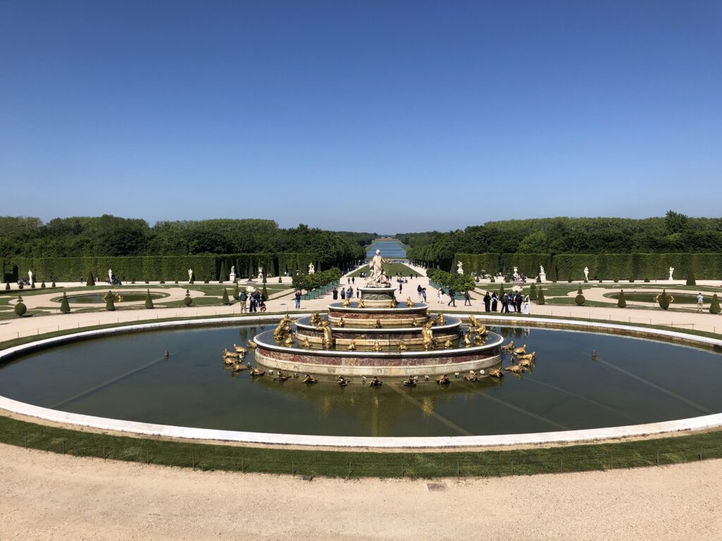 Perjantaina luovutimme huoneet aikaisin aamulla, ajoimme Pariisin aamuruuhkassa Versaillesin kaupunkiin, ja vierailimme linnassa, matkamuistomyymälässä sekä upeassa linnan puistossa. Sekä linna, että puisto olivat niin suuria, ettei lyhyt vierailu riittänyt alkuunkaan kaiken kokemiseksi ja näkemiseksi. Alkuperäiset maalaukset, patsaat ja tavarat saivat ajan pysähtymään ja historian tunnun sormenpäillä kosketeltavaksi. Puiston hienot osastot suihkulähteineen olisi vaatinut kokonaisen päivän, jotta kaiken olisi ehtinyt nähdä ja kokea. Suihkulähteet olivat päällä vain tiettyinä päivinä tiettyyn kellonaikaan, yksi suihkulähteistä tanssi taustamusiikin tahtiin ohjelmoitua koreografiaa. Oppaamme kertoi, että suihkulähteiden vanhoja alkuperäisiä putkistoja haluttiin säästää ja suojella käytön säännöstelyllä.