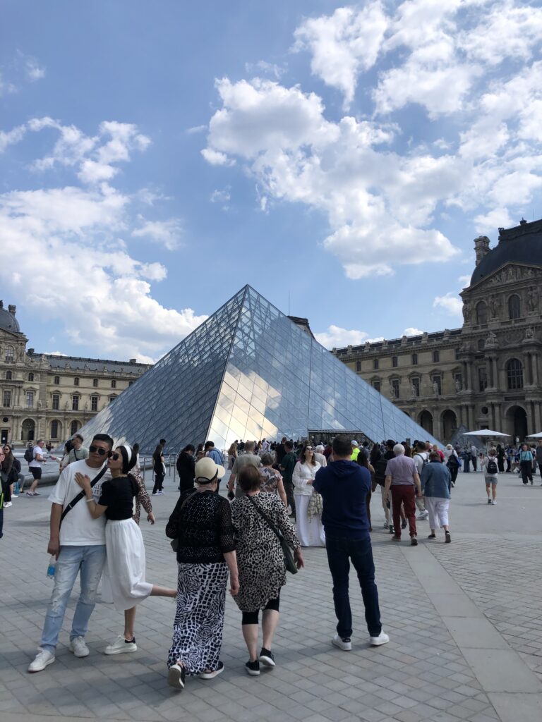 Montmartrella nautitun lounaan jälkeen suuntasimme kohti Louvren taidemuseota. Museoon ei ollut järjestetty opasta, joten Mona Lisaa etsittiin allekirjoittaneen ensikertalaisen johdolla. Pitkiä käytäviä pitkin vaellettaessa, valtavan kokoisia maalauksia ja patsaita ihaillessa, johdatin ryhmää museon aika vaatimattomien opasteiden avulla lopulta Mona Lisan luo. Kuuma, turisteja ja hajuveden tuoksuja täynnä oleva museo uuvutti matkailijat nopeasti. Mona Lisasta otettujen kuvien jälkeen porukka hajaantui ja sovimme tapaamisen ulko-ovella reilun tunnin vapaan kiertelyn päätteeksi. Selvisi, että uloskäyntejä oli useita: ensimmäinen kun tultiin näyttelystä pois, toinen matkamuistomyymälöiden jälkeen ja kolmas ulkona. Monien puheluiden ja etsintöjen jälkeen kaikki 24 retkeilijää löytyi sieltä sun täältä ja pääsimme linja-autolle ja kohti hotellia. Kuuman päivän päätteeksi monikaan ei jaksanut illalla turistikierrokselle, mutta pieni ryhmä lähti katsomaan iltavalaistuksessa hehkuvaa Eiffel-tornia.