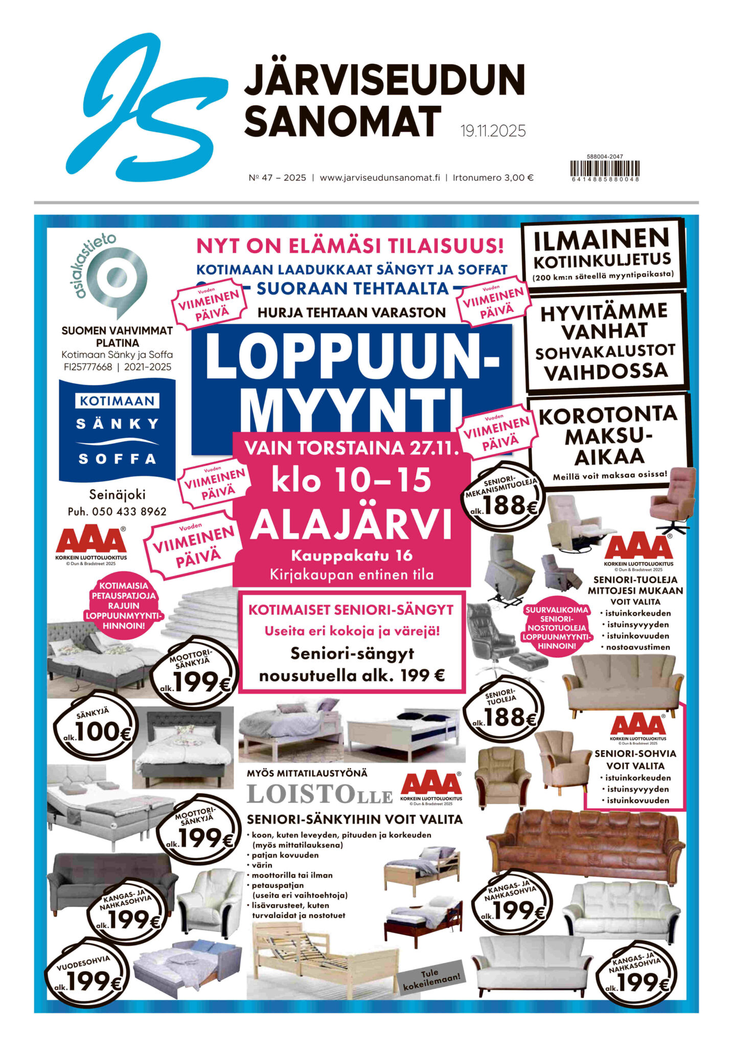 Järviseudun sanomien 19.11.2025 Näköislehti (digilehti) PDF muodossa jonka voit ladata suoraan laitteellesi.